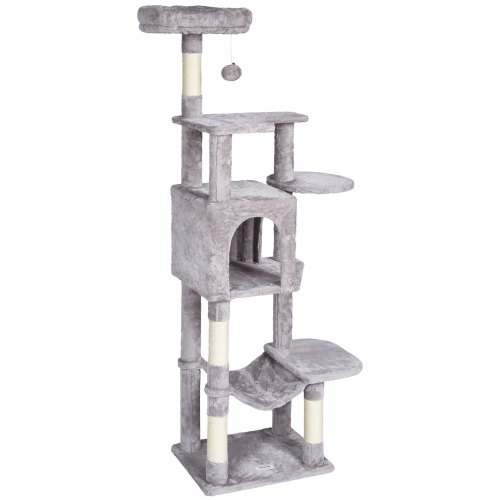 VEVOR Tiragraffi per Gatti da Interno 154 cm Torre per Gatti, Cuccia per Gatti, Trespolo Superiore, Piattaforme per Salti, Grande Centro Attività per Mobili per Gatti con Palla Appesa, Grigio Chiaro
