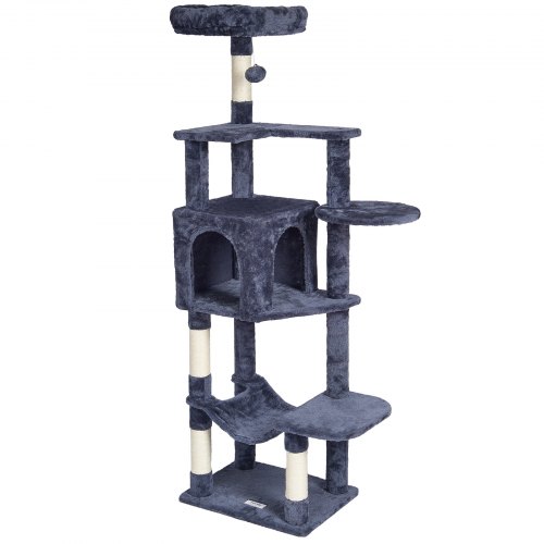 VEVOR Tiragraffi per Gatti da Interno 154 cm Torre per Gatti con Cuccia per Gatti, Trespolo Superiore, Piattaforme per Salti, Grande Centro Attività per Mobili per Gatti con Palla Appesa, Grigio Scuro