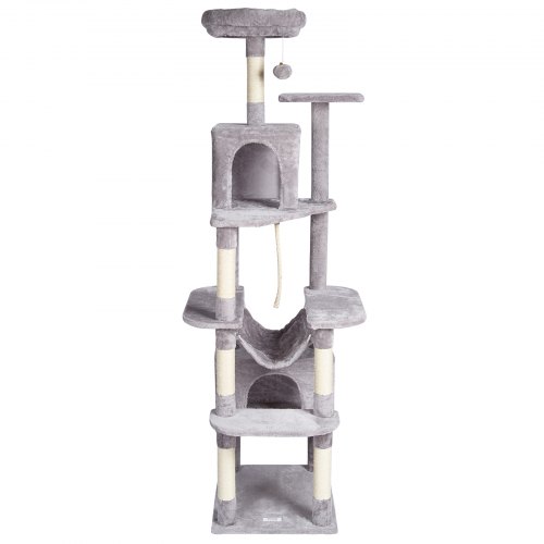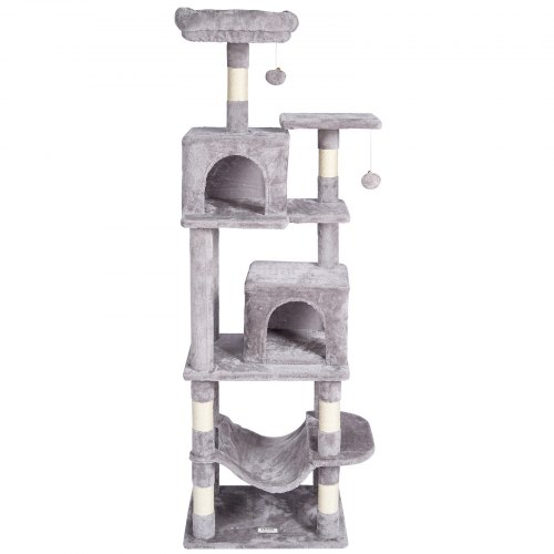 VEVOR Tiragraffi per Gatti Interno 174 cm Torre per Gatti, 2 Cucce per Gatti, Trespolo Superiore, Piattaforme per Saltare, Grande Centro Attività per Mobili per Gatti con Palla Appesa, Grigio Chiaro