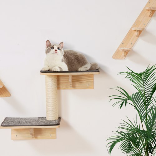 VEVOR Mensole da Parete per Gatti Set 6, Posatoi Montati a Parete per Gatti con Trampolini, Amaca, Divano, Albero per Gatti, Set di Mobili da Parete per Gatti Fino a 18,14 kg per Dormire, Arrampicarsi