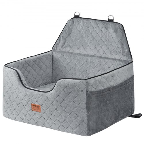 VEVOR Seggiolino Auto CaniPiccola Taglia 11kg, Rialzo per Cani Impermeabile, Maniglie Laterali, Tasca Portaoggetti, Guinzaglio con Clip, Imbottitura Cotone PP, Cuccia per Animali Domestici, Grigio