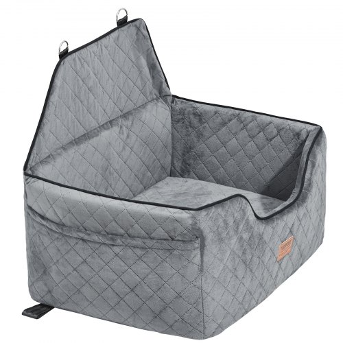 VEVOR Seggiolino Auto per Cani di Piccola Taglia 9 kg, Rialzo per Cani con Schienale Alto, Tasca Portaoggetti, Guinzaglio di Sicurezza con Clip, Imbottitura in Cotone PP, Cuccia Cane, Grigio Scuro