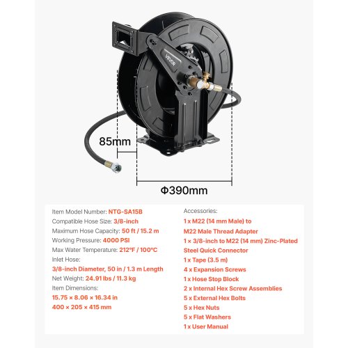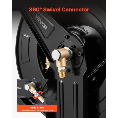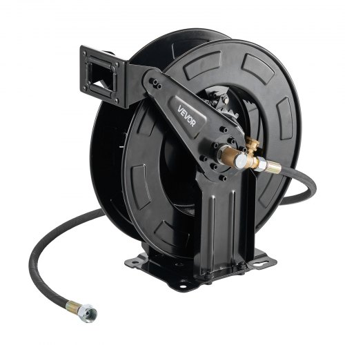 VEVOR Avvolgitubo per Idropulitrice 15,2 m x 9,5 mm, Bobina Avvolgitubo Retrattile in Acciaio, Montaggio a Parete / Pavimento, Pressione 275,8 bar, Riavvolgimento Automatico per Giardino