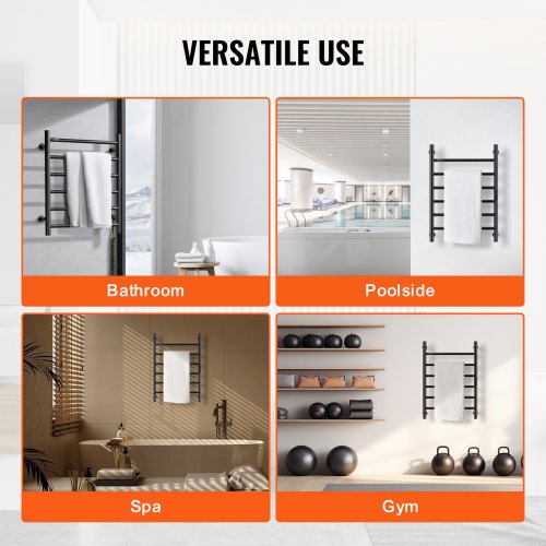 VEVOR Scaldasalviette Termoarredo, Portasciugamani Riscaldato con 6 Barre, Scaldasalviette Impermeabile con Timer e Display LED, 5 Livelli di Temperatura Regolabili, Montaggio a Parete, Nero