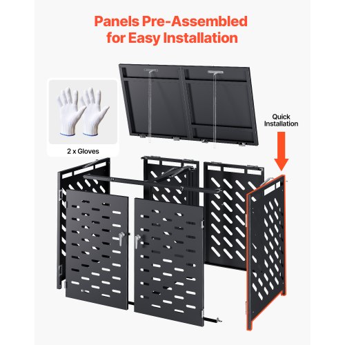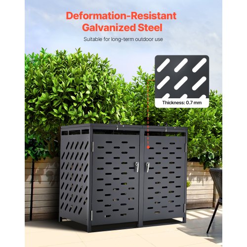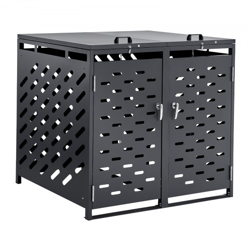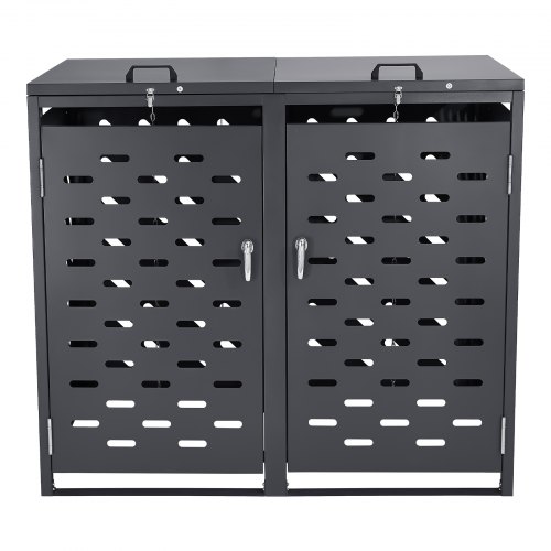 VEVOR Contenitore per Rifiuti da 2 x 240 L Contenitore per Bidoni della Spazzatura con Serratura, Armadio Orizzontale Impermeabile con Coperchio a Catena, per Bidoni della Spazzatura