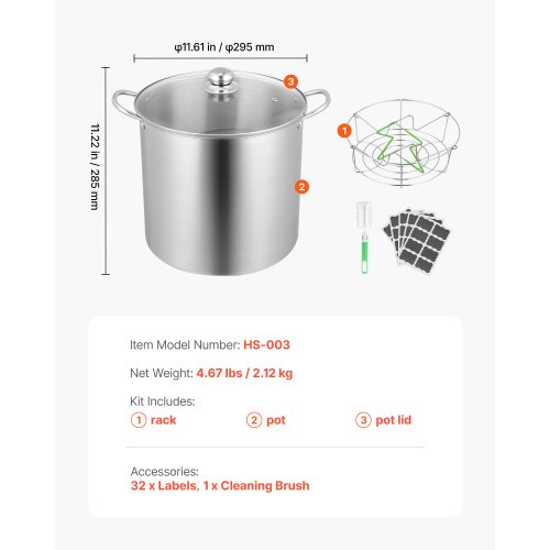 VEVOR Pentola per Conserve con Griglia, 19,86 L Pentola in Acciaio Inox a Bagnomaria con Doppio Manico e Coperchio in Vetro, Compatibile con Tutti i Piani Cottura Induzione, Gas, Elettrico