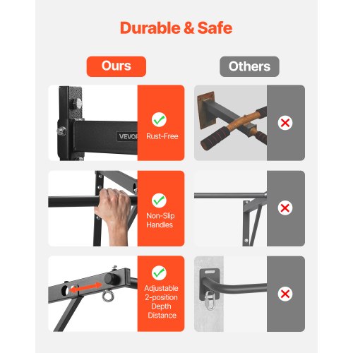 VEVOR Barra per Trazioni da Parete Profondità Regolabile 559/762 mm da Parete, Barre per Trazioni in Acciaio per l'Allenamento della Parte Superiore del Corpo, Stazione di Allenamento Carico 200 kg