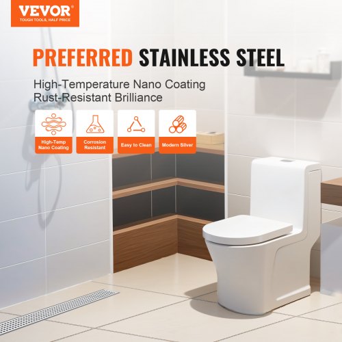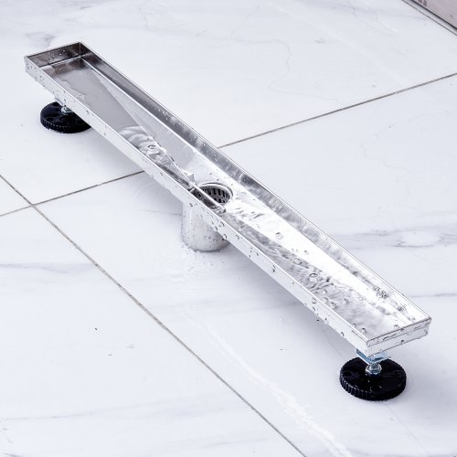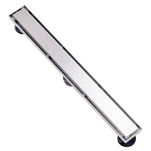 VEVOR Scarico per doccia lineare da 24 pollici sfalsato con coperchio, scarico a pavimento per doccia in acciaio inossidabile 304 spazzolato, scarico lineare con piedini livellanti argento