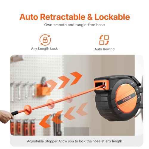 VEVOR Avvolgitubo Aria Compressa Retrattile Tubo Flessibile per Aria Compressa Ibrido Lunghezza 19,81m Pressione max. 300 PSI, Bobina Avvolgitubo Montaggio a Soffitto/Parete, Avvolgitubo da Officina
