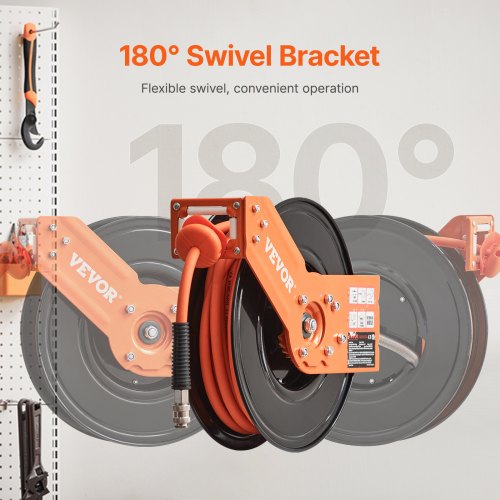 VEVOR Avvolgitubo Aria Compressa Retrattile Tubo Flessibile per Aria Compressa Ibrido Lunghezza 15,24m Pressione max. 300 PSI, Bobina Avvolgitubo Montaggio a Soffitto/Parete Staffa Girevole 180°