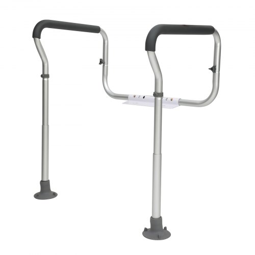 VEVOR Corrimano per WC di Sicurezza Maniglia Antiscivolo da Bagno Regolabile in Larghezza Altezza con Braccioli in Lega di Alluminio, Maniglia Carico max. 136kg Piedini a Ventosa da Pavimento Toilette