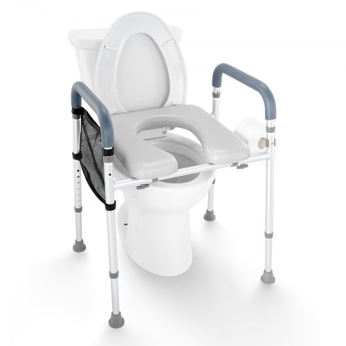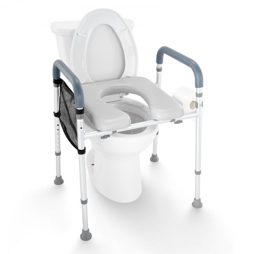 VEVOR Ringhiera di Sicurezza per WC 136,07 kg Sedile WC Pieghevole con Maniglie Antiscivolo, Corrimano per WC Portatili e Versatili con Tubo in Lega di Alluminio Rinforzato da Bagno WC Seduta