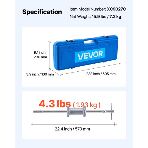 VEVOR Kit di Estrazione Ammaccature, con Martello Scorrevole da 5,89 kg, Strumento di Rimozione Danni Automobilistici per Riparazione Carrozzeria con Custodia, Asta di Prolunga, Impugnatura