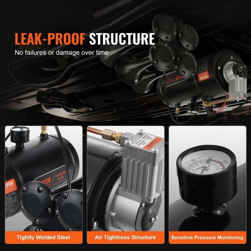 VEVOR Kit di Controllo Ammortizzatori Pneumatici 12 V 100 PSI Sistema di Compressore d'Aria di Bordo con Sistema a Percorso Singolo, Kit Compressore Sospensioni Pneumatiche, per Vari Veicoli, Nero