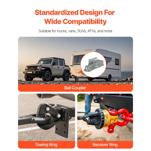 VEVOR Gancio a Perno 9070 kg Gancio di Traino, Combinazione, Sfera Traino 50,8 mm per Anello a Lunetta 63,5 a76,2 mm Kit Montaggio, Adesivi di Avvertimento Fosforescenti, Verniciatura a Polvere Nera