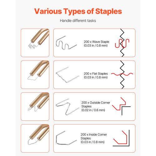 VEVOR Saldatrice per Plastica Senza Fili 120 W con 400 Pezzi di 4 Tipi di Punti Metallici Caldi, Kit per Saldatura a Punti Metallici Caldi Ricaricabile, Kit Riparazione Paraurti per Kayak, Giocattoli