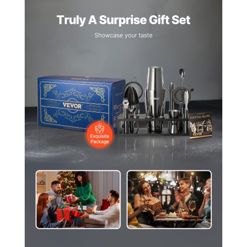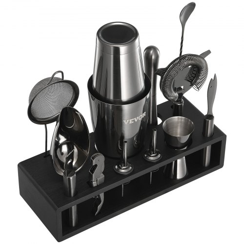 VEVOR Set Agitatore per Cocktail, 13 Pezzi Utensili in Acciaio Inox, Kit da Boston Barista con Supporto Bambù Cucchiaio per Miscelatore, Pestello, Versatori per Liquori, Pinza Ghiaccio