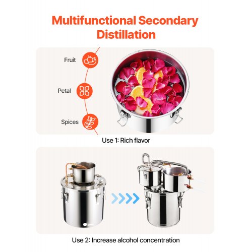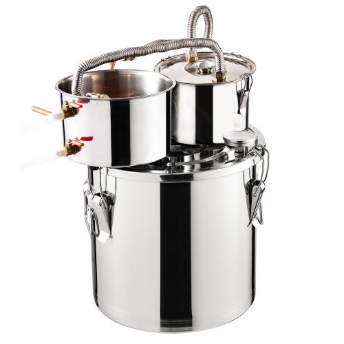 VEVOR Distillatore Alcol con Pompa d'Acqua per Uso Domestico in Acciaio Inox da 10L, Alambicco Distillatore per Vino Liquore Grappa a Casa Uso Domestico con Pompa d'Acqua, Kit per Distillazione Alcol