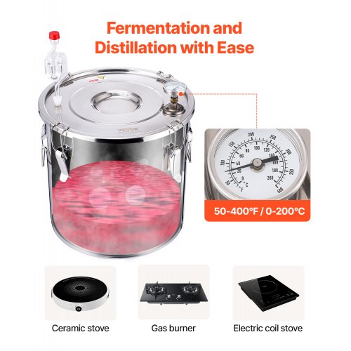 VEVOR Distillatore di Alcol 30 L Distillatore di Alcol Acqua in Acciaio Inossidabile con Bobina di Rame, Kit di Fermentazione per Raffinazione Birra Fatta in Casa con Termometro e Pompa, Argento