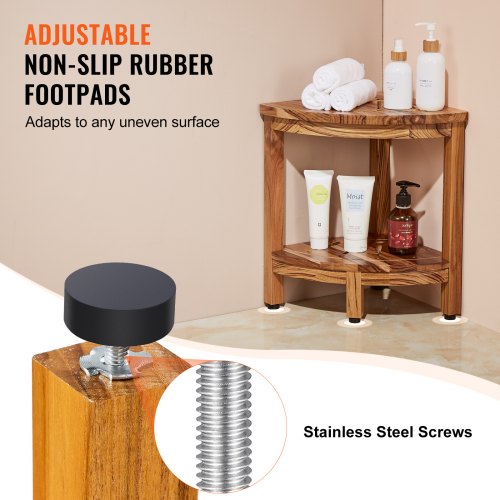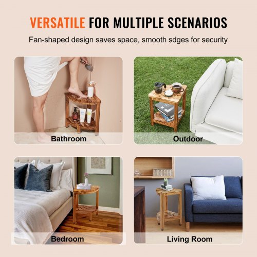 VEVOR Panca Doccia Angolare in Teak, Altezza 430mm Raggio 305mm, Doccia da Spiaggia Angolare in Legno di Teak, 136kg con Ripiano, Sgabello da Doccia per Doccia Interna ed Esterna, per Bagno