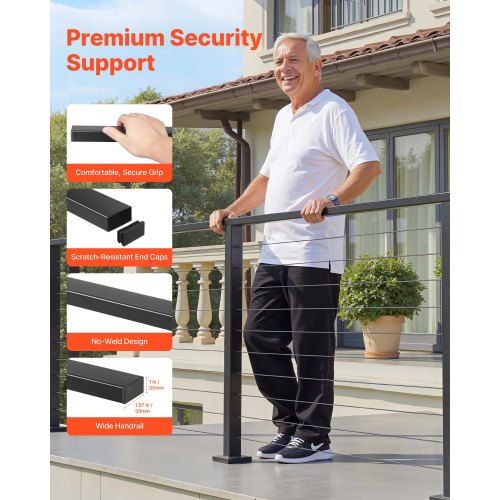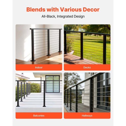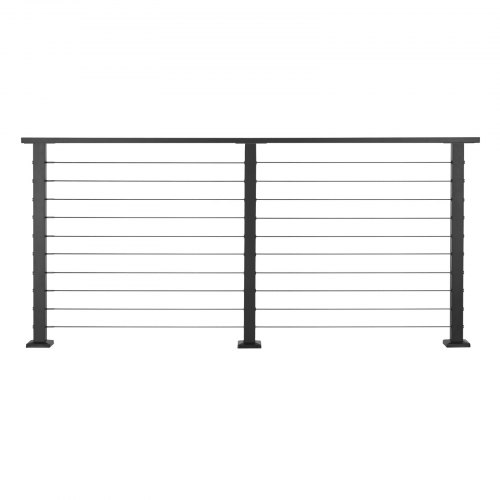 VEVOR Kit Ringhiera con Cavi da 198 cm, Ringhiera per Balcone in Acciaio Inox Nero Opaco, Kit di Corrimano per Scale con Montanti Altezza 89 cm, Spaziatura Cavi di 8 cm, per Cortile Terrazza