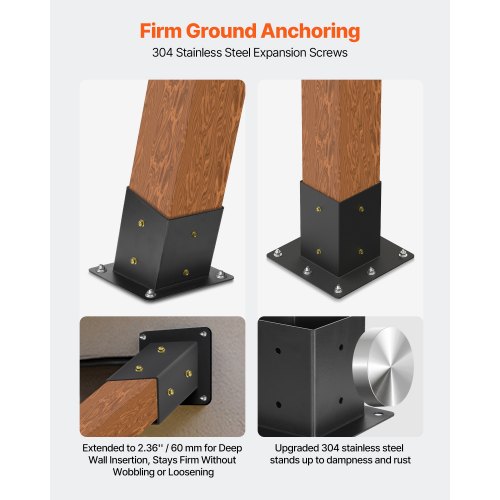 VEVOR Confezione di Supporti 2 Pezzi per Pali in Legno 102 x 102 mm, Kit Base per Pali Interni 91 x 91 mm in Acciaio a Carbonio per Ancoraggio Pali in Legno Ringhiere, Corrimano di Terrazze, Portici