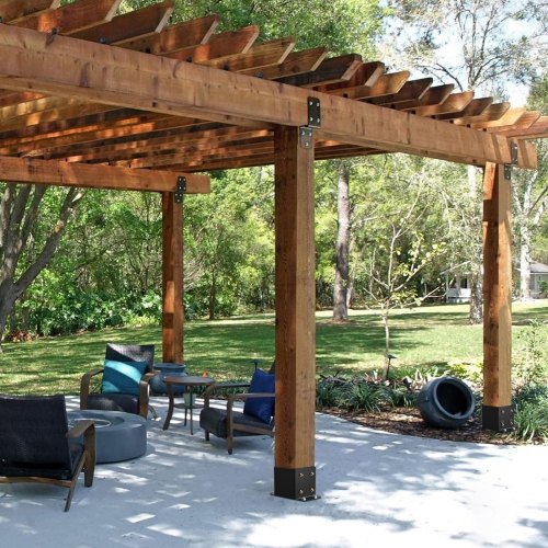 VEVOR Kit per Pergola in acciaio al carbonio, 8 Pezzi Staffe Inclinate a 3 Vie ca.101 x 101 mm, Adatto per Travi da ca.1067 x 1067 mm con Accessori per Montaggio a Parete, Pergole Esterne, Gazebo