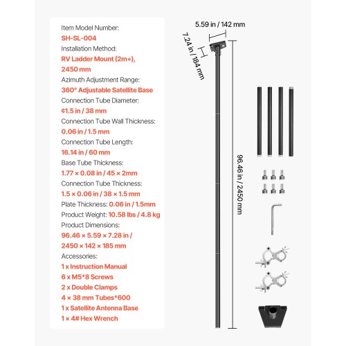VEVOR Supporto per Palo per Camper Starlink, Angolo di Montaggio Regolabile a 360°, Kit Tubi Gen 3 Standard, Adattatore per Scala per Camper Starlink Extra Lungo in Acciaio, Compatibile con Gen3 e V3