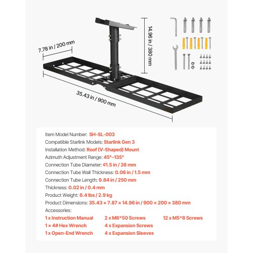 VEVOR Supporto da Tetto per Starlink Gen 3, Adattatore per Palo da Tetto Angolo di Montaggio Regolabile da 30 a 150°, Kit di Tubi Starlink Gen 3 Standard in Acciaio Compatibile con Gen3 e V3