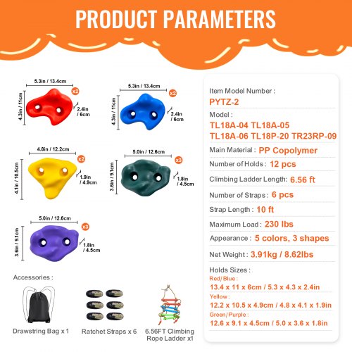 VEVOR Kit Ninja per Arrampicarsi sugli Alberi, 6 Cinghie a Cricchetto, Arrampicata sugli Alberi 12 Prese per Arrampicata sugli Alberi, 1 Scala da Arrampicata, Rocce da Arrampicata per Bambini, Adulti