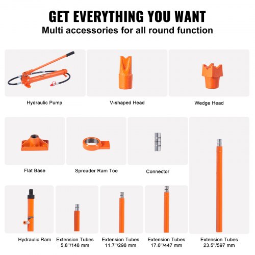 VEVOR Kit di Martinetto Idraulico Carico Max. 12 Tonn. Sollevatore Pompa per Riparazione Auto Corsa da 135 mm, Kit Utensili Sollevatore Idraulico Tipo d'Olio HV15 Cilindro Q235B Anello di Tenuta TPU