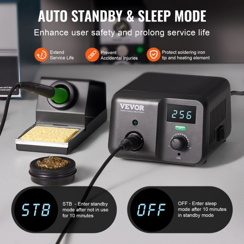 VEVOR Stazione di Saldatura con Schermo Digitale 80 W Kit Stazione di Saldatura con 2 Mani di Aiuto, 5 Punte di Saldatura, Pinzetta, Modalità di Standby Automatico e Sospensione, Conversione °C/°F