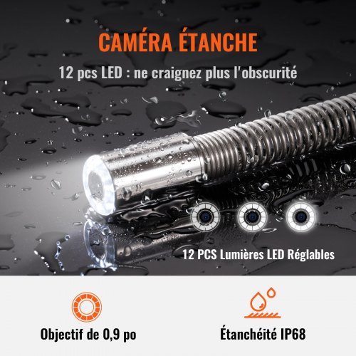 VEVOR 50 m Kit Telecamera per Ispezione Tubi telecamera endoscopica Impermeabile con Scheda Sd 8G con Batteria 4500Ma per Tutti i Proprietari di Case