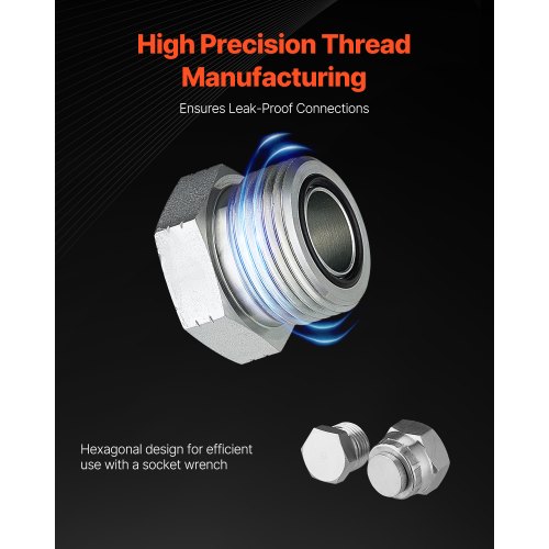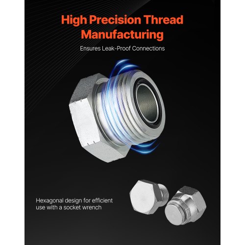 VEVOR Raccordi Idraulici ORFS, 72 Pezzi, Kit di Raccordi con Guarnizione Frontale O-Squillo, Raccordi per Tubi Flessibili Idraulici e Tubi, Filettatura di Precisione, Misure 4 6 8 10 12 16
