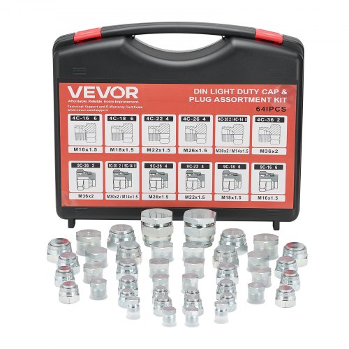 VEVOR DIN Raccordi Idraulici, 64 Pezzi, Kit di Tappi per Tubi Idraulici DIN per Impieghi Gravosi, Kit di Raccordi per Tubi Flessibili e Tubazioni, Dimensioni Trattino14/16/18/22/26/30/36