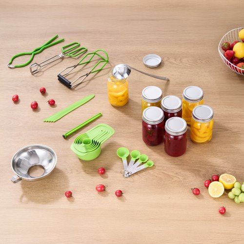 VEVOR Kit di Base per Forniture per Inscatolamento, 9 Pezzi, Set per Conservazione Domestica, Griglia, Mestolo, Cucchiaio Dosatore, Imbuto, Pinze, Sollevatore per Barattoli, Chiave per Barattoli