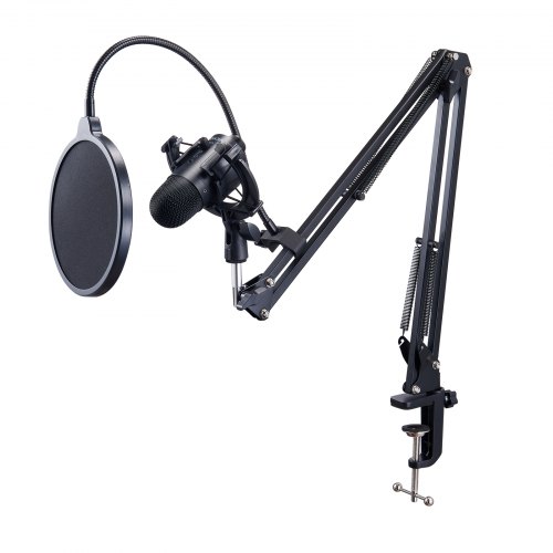 VEVOR Microfono con Braccio per Studio Microfono Acustico 192 kHz/24 bit, Kit Microfono a Condensatore, Filtro Anti-pop, Supporto Antiurto, Pulsante di Disattivazione Audio, per Registrazione