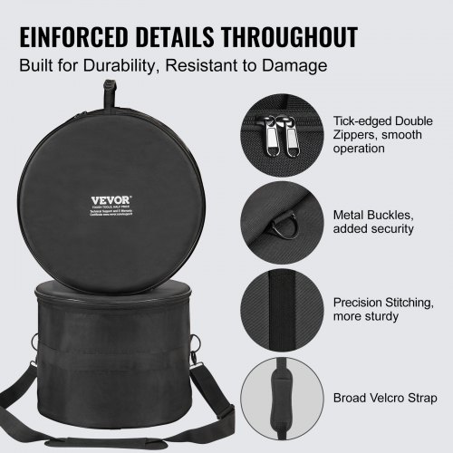 VEVOR Kit Borse per Batteria in Tessuto Oxford 1680D 5 Pezzi, con Tracolla Rimovibile 1,5 m, Manici Pieghevoli per Grancassa da 22", Tom da 30,48/33,02/40,64", Rullante da 35,56 cm