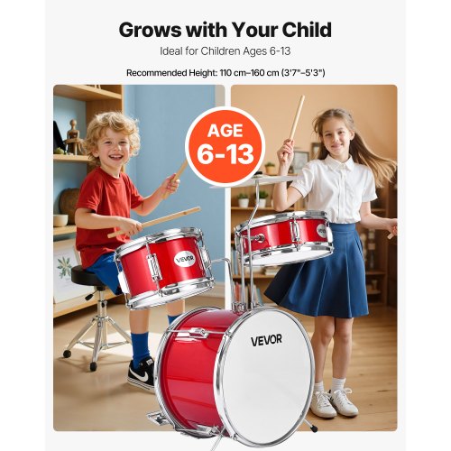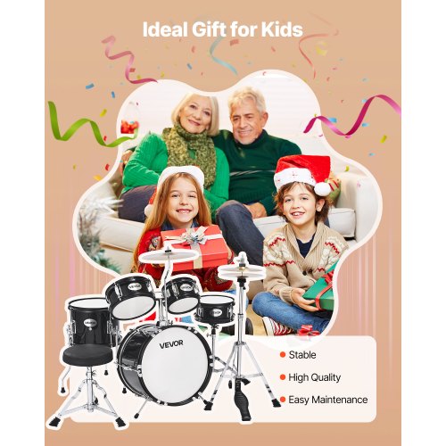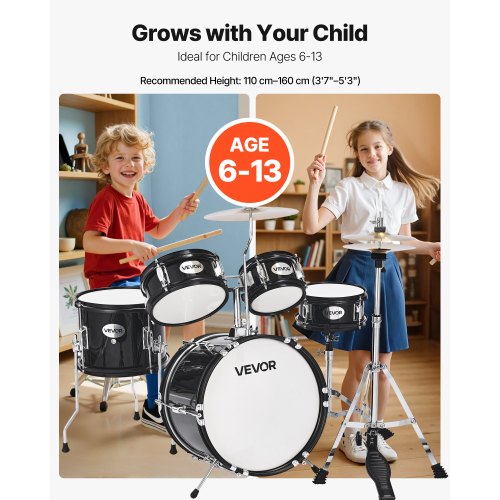 VEVOR Kit di Batteria per Bambini, Set di Principianti con Pedale per Piatti a Trono Regolabile Bacchette, Tamburo per Tom, Rullante, Grancassa, Kit di Batteria Principianti, Nero, 3 Pezzi, 355,6 mm