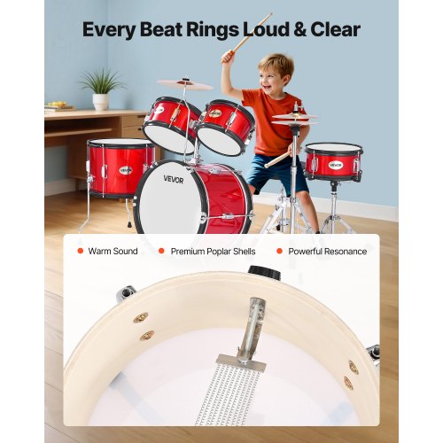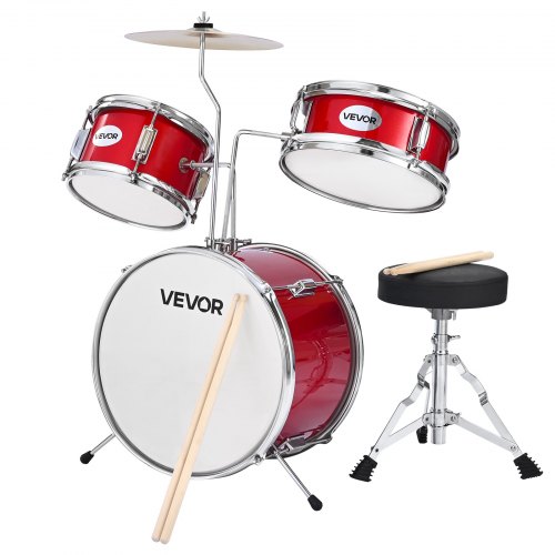 VEVOR Batteria 5 Pezzi Kit Musicale per l'Apprendimento da ca. 16 pollici / 406 mm Rosso
