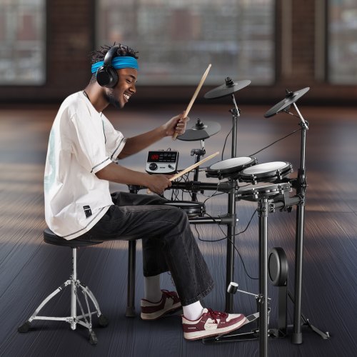 VEVOR Set di Batteria Elettronica, 32 Kit di Batteria Elettronica da 480 Suoni, Set di Batteria Elettronica Rullante a Doppio Trigger da 203,2 mm con Supporto USB MIDI con Piatti Bacchette e Cuffie