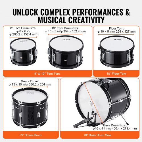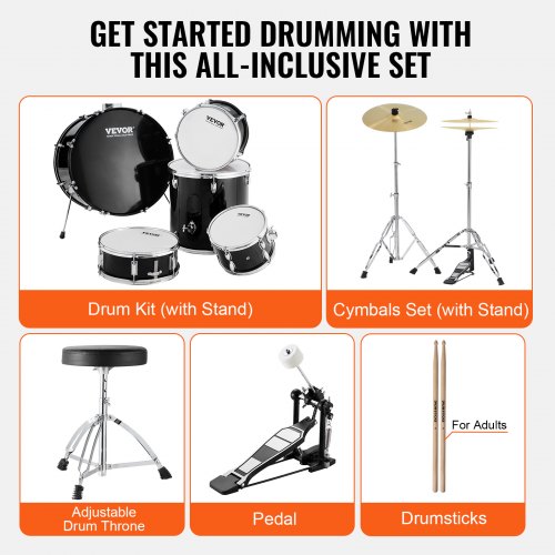 VEVOR Batteria 5 Pezzi Kit Musicale per l'Apprendimento da ca. 14 pollici / 35.56 cm Nero