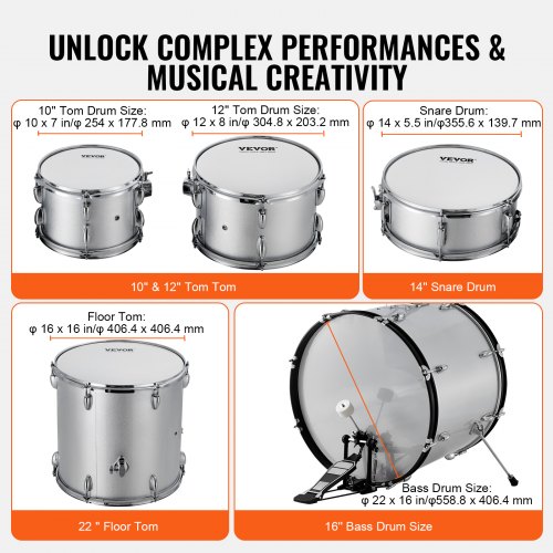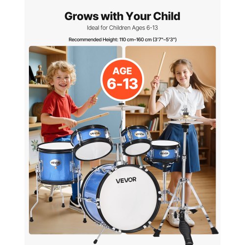 VEVOR Batteria 3 Pz Kit Musicale per Principianti Apprendimento ca. 14 pollici / 35,56 cm Blu