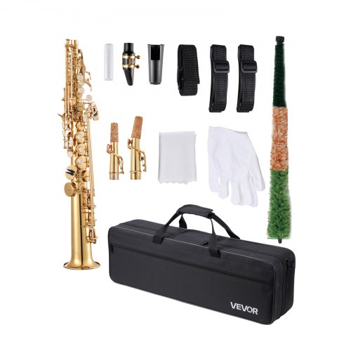 VEVOR Sassofono Soprano Dritto, Si Bemolle, Kit di Sassofono in Ottone a 23 Tasti per Principianti, con Custodia Trasporto, Bocchino, Asta per Panno di Pulizia, Guanti, Tracolla, Oro