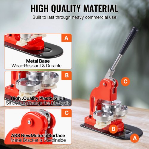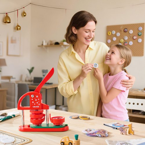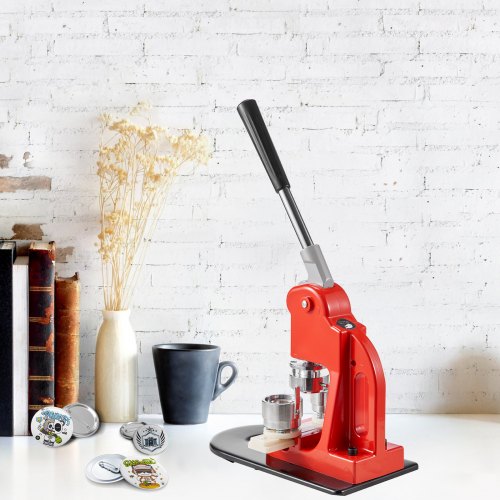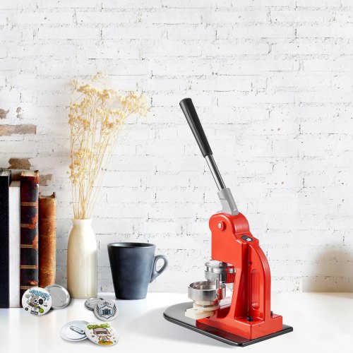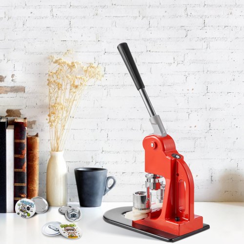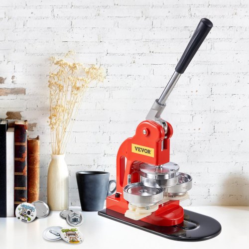 VEVOR Macchina per Spille Rotonde, Macchina Punzonatrice con 100 pezzi Kit per Fustellatrice Manuale per Badge 58 mm, Impugnatura Ergonomica, per Spille Personalizzate Fai da te, Rosso