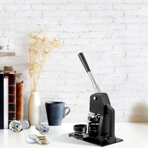 VEVOR Kit per Fustellatrice Manuale di Badge Spillo Bottoni Modelli Diametro 25mm, Kit di Punzonatrice Manuale in Ferro ABS per Badge Spillo Fai-da-te con Accessori Completi Modelli da Diametro 25mm
