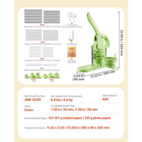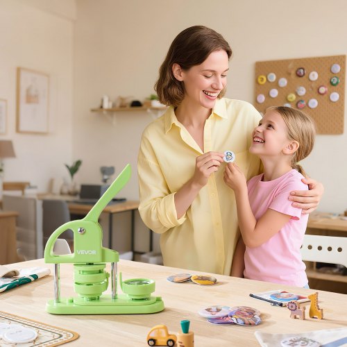 VEVOR Macchina per Spille, Macchina Punzonatrice con 200 pezzi Kit per Fustellatrice Manuale per Badge 32/58 mm, Impugnatura Ergonomica, per Spille Personalizzate Fai da te, Verde