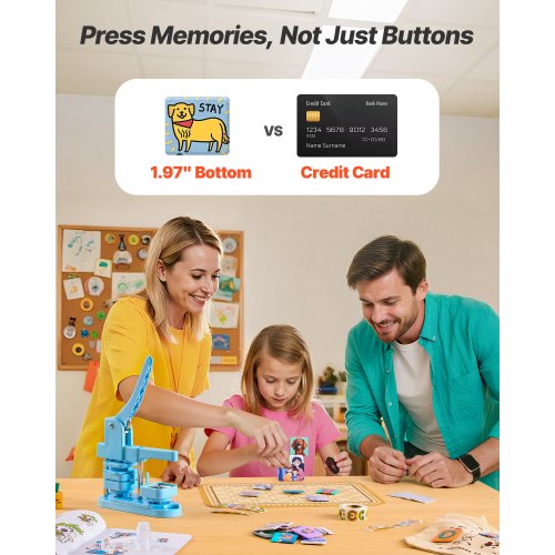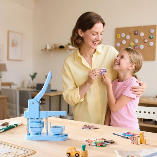 VEVOR Macchina per Bottoni, Macchina per Badge 25/32/58mm, Parti per Bottoni da 300 Pezzi, Macchina per Bottoni con Libro Magico Panda, Kit di Punzonatrice per Regali Fai da Te per Bambini, Blu
