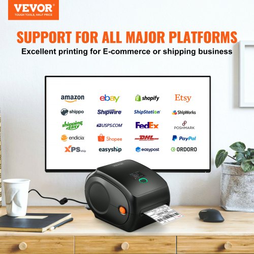 VEVOR Stampante Termica per Etichette 4 x 6 Codice a Barre Risoluzione 300 DPI, Connessione USB / Bluetooth, Etichettatrice Termica 150 mm/s Compatibile a IOS/Android/Windows/MAC OS/Linux/Chromebook