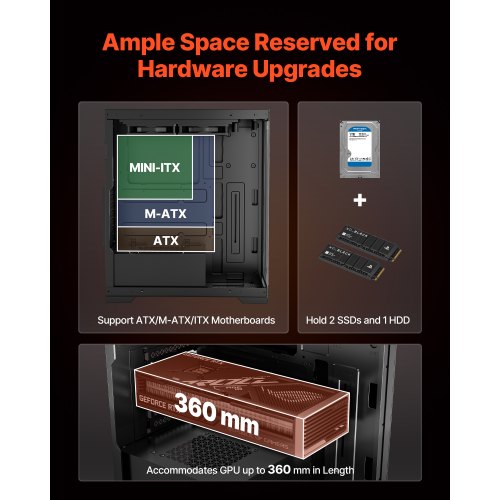 VEVOR Case per PC Compatto, 2 Ventole da 120 mm Case per Computer da Gioco con Pannelli in Vetro Temperato ad Alto Flusso d'Aria, per GPU Fino a 360 mm di Lunghezza, Compatibile con ATX/M-ATX/ITX